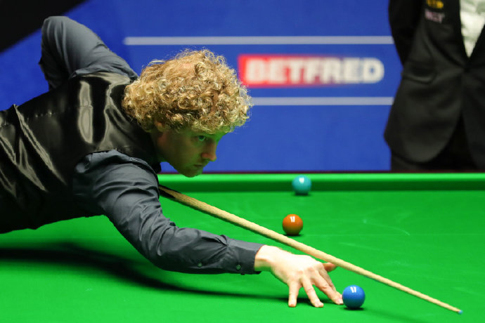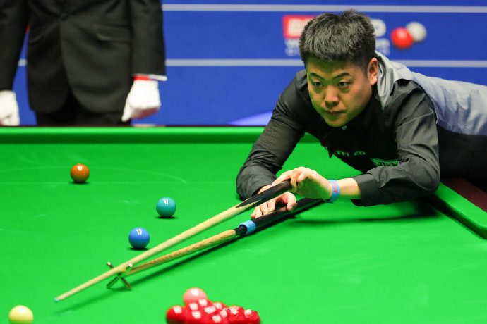 第4局,罗伯逊传球进攻,没有打进,梁文博单杆12分,走位出现偏差,长台红球不进;罗伯逊单杆108分清台拿下。短暂休息之后,第5局和第6局,两人各自一杆70+拿下,之后罗伯逊依旧压制,虽然梁文博第九局打出单杆126分,但还是3-6结束落后第一阶段。