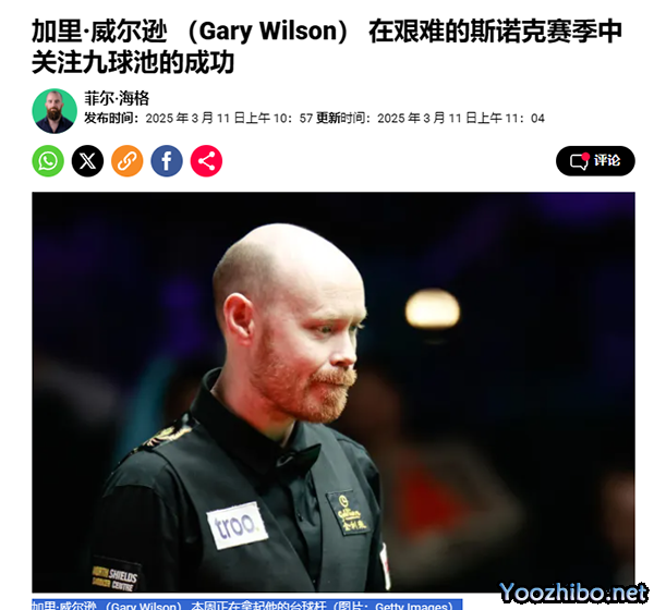 这位 39 岁的选手上加里·威尔逊,赛季赢得了两项斯诺克排名赛冠军,但本赛季在状态和成绩方面都遇到了困难,仅有的一次打进四分之一决赛是他本赛季最好的成绩。他已经跌出了世界排名前 16,下个月将面临世界斯诺克锦标赛资格赛,但他首先要前往萨拉热沃,看看能否在美式台球桌上提升自己的士气。
