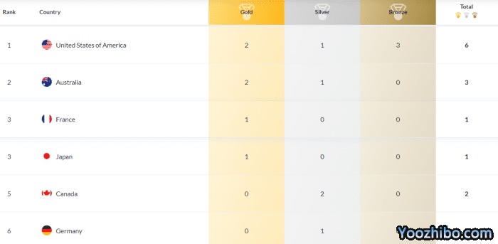 世锦赛最新金牌榜:美国2金6奖牌第一,中国0牌滑铁卢
