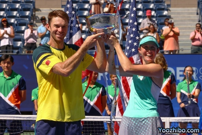 篮球直播吧讯 北京时间9月11日,2022年美网公开赛结束混双决赛争夺。赛会4号种子、澳大利亚组合桑德斯/皮尔斯通过抢十决胜,以4-6/6-4/10-7逆转菲利普肯斯/瓦塞林成功捧杯,最后轰出一记再见Ace的皮尔斯,曾与中国球员张帅搭档,但都遗憾未能合作拿下大满贯混双冠军头衔。