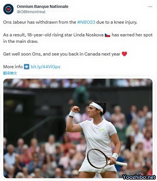 今年的WTA1000蒙特利尔站正赛将于当地时间8月7-13日在蒙特利尔举行。而赛前,刚刚连续第2年在温网女单决赛中落败的贾巴尔宣布,她将因膝伤退出本项赛事。