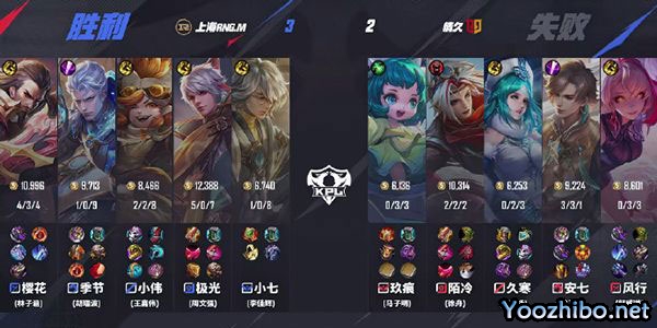 10分钟双方野区碰撞,上海RNG.M先手开到苍,但马超依靠自身经济优势打满输出,情久减员对方三人,拿到暗影暴君。15分钟,情久开启奔狼直接击杀对方三人,最终带着上路兵线直破水晶,双方战至决胜局。本局MVP为情久久寒(朱飞扬)不知火舞!