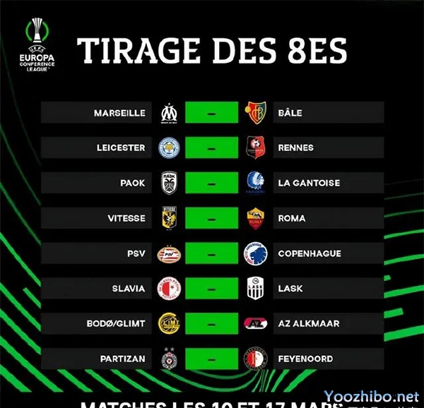 篮球直播吧讯 北京时间2月25日傍晚,21/22赛季欧协联1/8决赛抽签仪式在瑞士尼翁进行。十六强名额全部出炉,其中五大联赛包揽13个席位。