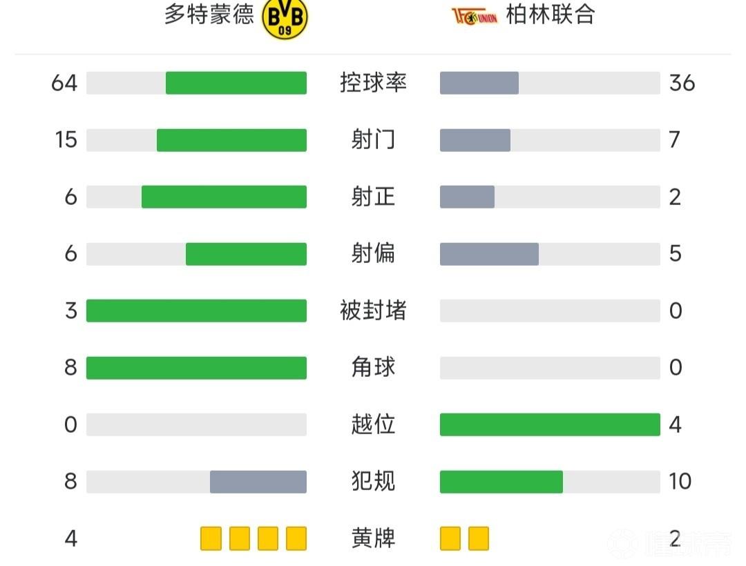 全场比赛结束,多特蒙德2-1柏林联合。