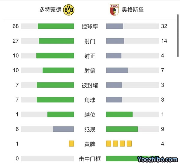 全场比赛结束,最终多特蒙德4-3奥格斯堡!