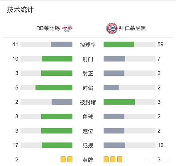 全场比赛结束,最终拜仁1-1战平莱比锡。