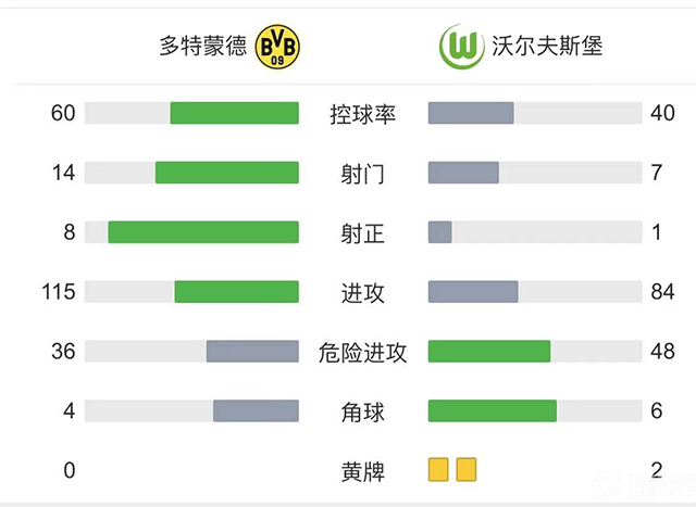 全场比赛结束,多特6-1沃尔夫斯堡。