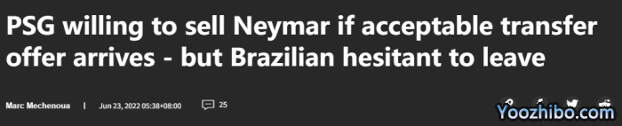篮球直播吧06月23日讯 据进球网报道,如果报价合适,巴黎愿意在今夏出售内马尔,但球员对于离队持犹豫态度。