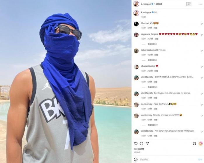 篮球直播吧06月19日讯 ,姆巴佩在ins上晒出自己身穿杜兰特球衣,并且脸部用布缠绕,扮作忍者的照片,并配上“”表情。
