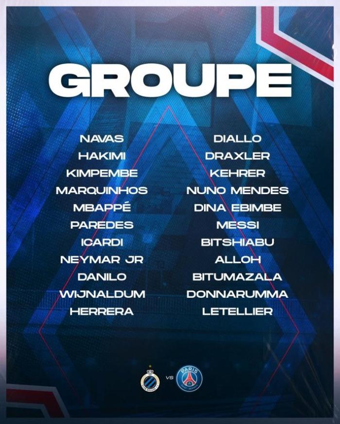 篮球直播吧讯 北京时间9月16日,巴黎将在欧冠小组赛首轮主场迎战布鲁日。赛前,巴黎公布比赛大名单,梅西、内马尔、姆巴佩领衔。