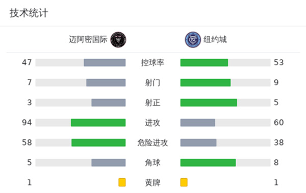 迈阿密国际1-2纽约城 梅西打满全场失良机布斯克茨助攻