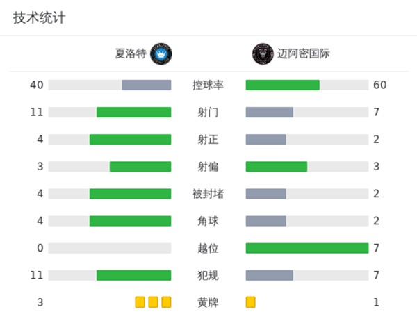 迈阿密0-1夏洛特 梅西打满全场任意球中框