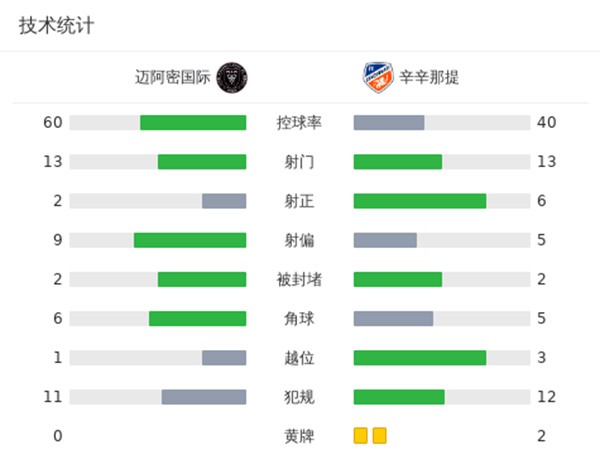 迈阿密0-1辛辛那提 梅西替补出战40分钟