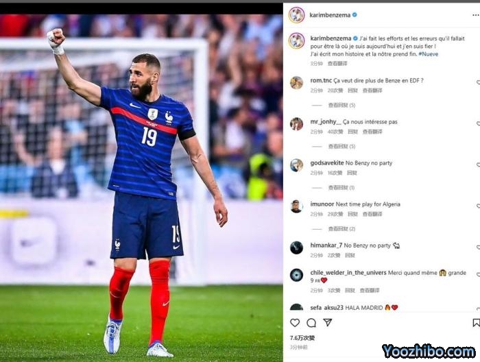 来源:篮球直播吧12-20 09:36篮球直播吧12月20日讯 本泽马在个人社媒发文,宣布自己将从法国国家队退役。