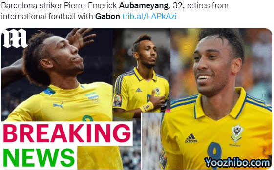 奥巴梅扬宣布退出加蓬国家队:感谢所有人的支持