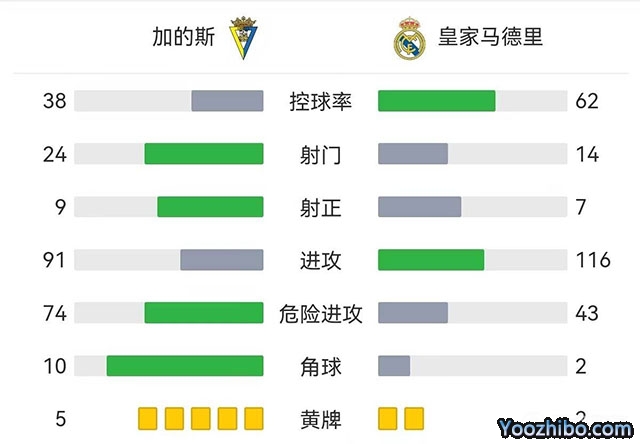 全场比赛结束,最终皇马客场1-1加的斯。