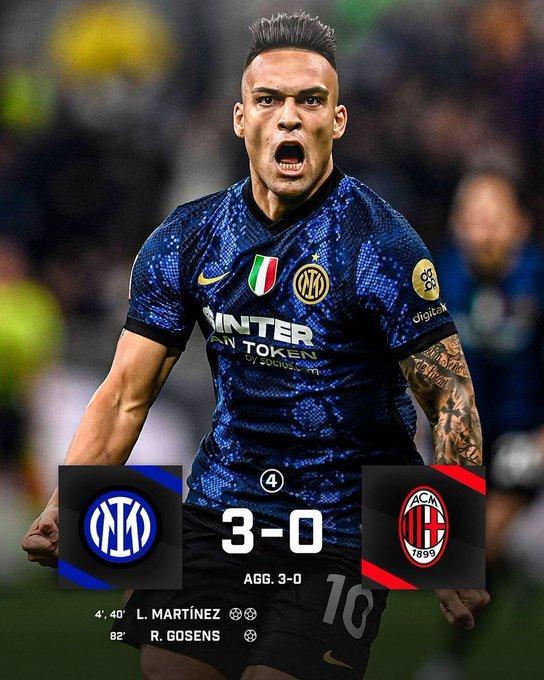 国米此前4次参加意大利杯半决赛均遭到淘汰,但今天他们在次回合主场3-0战胜同城死敌米兰,时隔11年再次杀入意大利杯决赛。