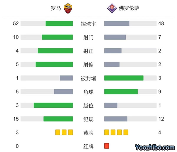 全场比赛结束,最终罗马主场2-0战胜佛罗伦萨。