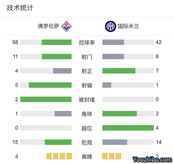 全场结束,国际米兰4-3客场击败佛罗伦萨。