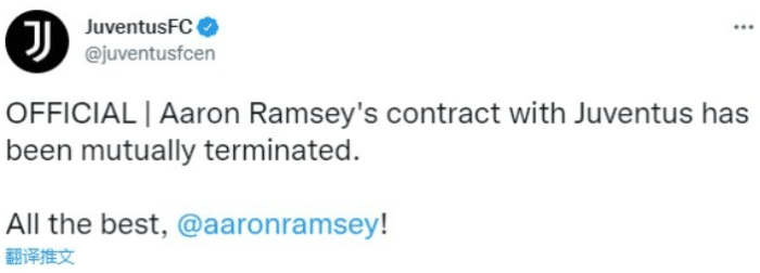 官方:尤文图斯与拉姆塞提前一年解约