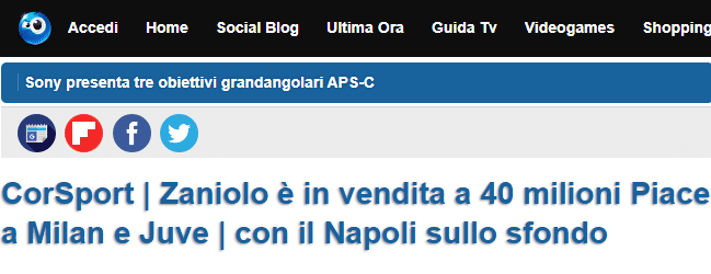 篮球直播吧06月03日讯 据《米兰新闻网》报道,AC米兰有意签下扎尼奥洛,罗马方面为球员标价4000万欧元。