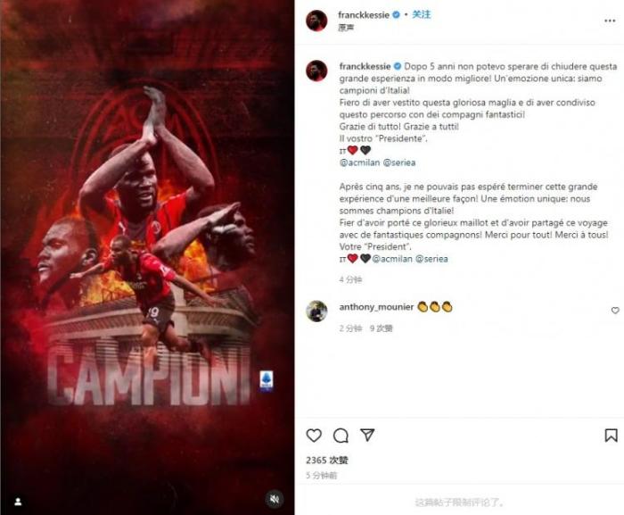 篮球直播吧05月28日讯 凯西写道:5年时光,用一个冠军来告别无疑是最好的告别方式,这是一种特别的情感:我们是意大利冠军!