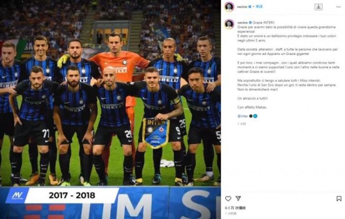 “我想对俱乐部、教练团队、工作人员致以感谢,还有我的队友们,我们一起经历了许多,并一直支持着彼此。当然,最重要的还有国米球迷,圣西罗的欢呼声将永伴我心,给大家一个大大的拥抱。”