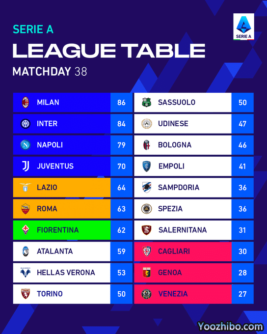 篮球直播吧05月23日讯 今天凌晨,意甲联赛收官,米兰力压国米夺得队史第19座意甲冠军。在意甲冠军排行榜上,米兰追平了国米,两队仅次尤文图斯。