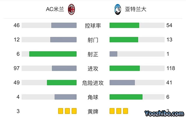 全场比赛结束,AC米兰2-0战胜亚特兰大。