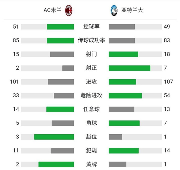 第25分钟,戈森斯禁区外围中路起脚挑传,罗梅罗门前俯身冲顶破门,亚特兰大1-0AC米兰。