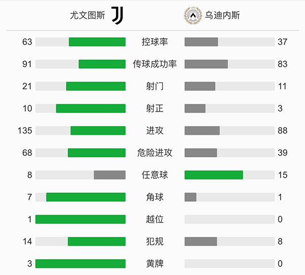 第90分钟,乌迪内斯扳回一球,德保罗右路扣过防守后传中,泽格拉尔打进一球,尤文图斯3-1乌迪内斯。