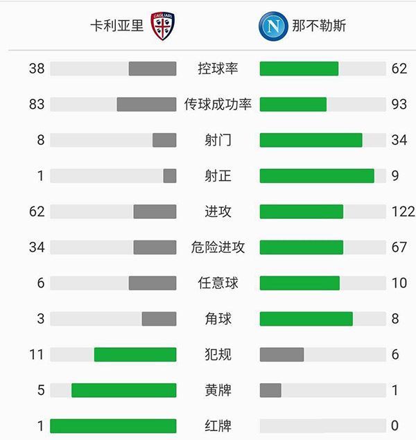 第84分钟,卡利亚里再遭打击,刚刚登场的卡里加拉就在禁区内手球犯规送点。因西涅主罚点球得手。那不勒斯4-1卡利亚里。