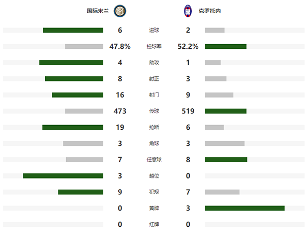 克罗托内首发:1-科尔达斯、5-戈列米奇(85'26-科菲-吉吉)、34-马罗内、13-卢佩尔托(69'6-马加利安)、32-佩德罗-佩雷拉、17-莫利纳(85'77-维利奇)、21-扎内拉托、69-雷察、95-爱德华多-恩里克、97-里维耶(61'25-恩万科沃)、30-儒尼奥尔-梅西亚斯(85'20-路易斯-罗哈斯)