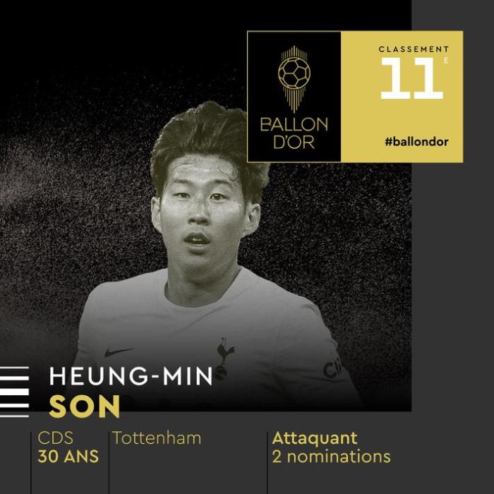 孙兴慜曾在2019年入选金球奖候选名单,排名第22位,如今他排名第11位,创造亚洲球员在金球奖的历史最高排名。