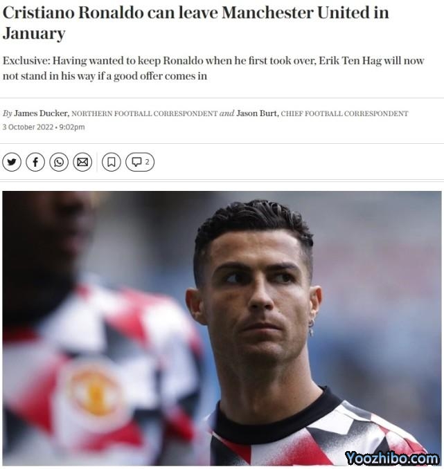 来源:篮球直播吧10-04 16:23篮球直播吧10月04日讯 凌晨,来自英国知名媒体《电讯报》的消息,在对阵曼城的比赛枯坐板凳90分钟后,失望的C罗离队欲望更加强烈。他与经纪人门德斯,正在全力寻求明年一月离开曼联,如果有合适报价到来,曼联主帅滕哈格也不会阻止C罗离队。