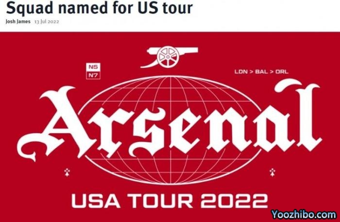 此次美国行,阿森纳将参加三场季前热身赛,分别对阵埃弗顿、奥兰多城以及切尔西。