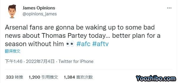 篮球直播吧07月05日讯 《电讯报》今日爆料称,一位英超球员因涉嫌强奸在北伦敦被捕,而有球迷发现,在消息出来的10个小时前,有一名推特用户表示阿森纳本赛季将没有中场托马斯-帕特耶可用。