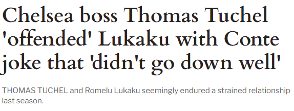 “我被告知,当图赫尔和卢卡库一起观看热刺的比赛时,图赫尔指着孔蒂向卢卡库调侃称‘你爸爸来了’,这当然只是个玩笑,但卢卡库对此并不满意。”
