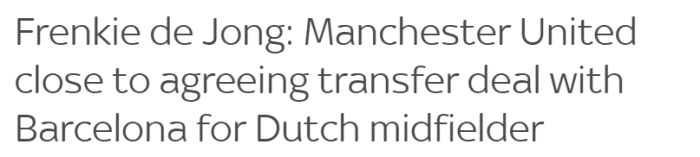 篮球直播吧06月28日讯 天空体育消息,曼联接近从巴塞罗那签下德容,转会费为6500万欧加浮动。