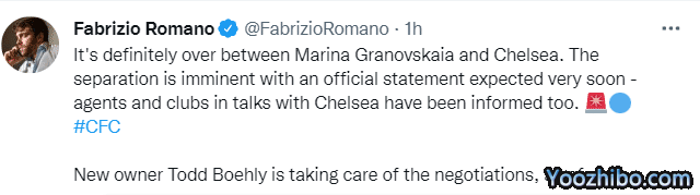 篮球直播吧06月21日讯 据罗马诺报道,切尔西很快就会官宣总监玛丽娜-格拉诺夫斯卡娅离任的消息,俱乐部新老板陶德-伯利正在负责续约和转会谈判。