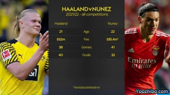 篮球直播吧06月13日讯 消息,天空体育对比了哈兰德和达尔文-努涅斯这两笔英超夏季重量级签约。