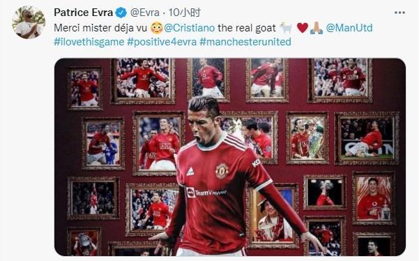 埃弗拉曾和C罗一起在曼联夺取英超和欧冠冠军。C罗回归红魔后,首次就打进两球。