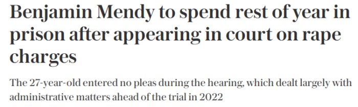 近日门迪在切斯特皇家法庭出席了一个45分钟的审讯,他只是在审讯中确认了自己的姓名,没有为自己辩护,法庭处理了一些行政事宜,明年1月24日他将接受审判。