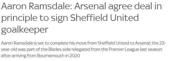 篮球直播吧讯 据天空体育、The Athletic和知名转会记者罗马诺报道,阿森纳已经接近以2400万英镑+600万英镑浮动的价格签下谢菲联门将拉姆斯代尔。