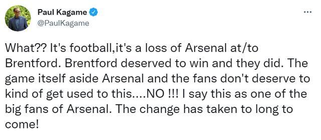 篮球直播吧讯 北京时间8月14日,阿森纳在英超揭幕战中0-2不敌升班马布伦特福德。作为阿森纳球迷的卢旺达总统保罗-卡加梅在个人社交媒体上表达了不满。
