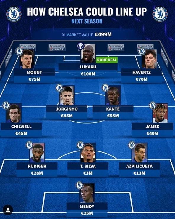 德转预测蓝军阵容:卢卡库领衔,总身价4.99亿
