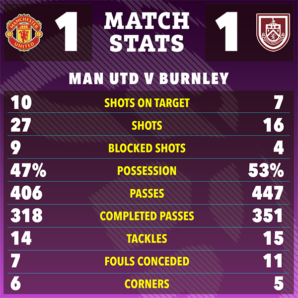 来源:篮球直播吧04-28 18:31篮球直播吧讯 曼联在英超主场1-1被排名倒数第二的伯恩利逼平,由于之后阿斯顿维拉2-2战平切尔西,只剩4轮而落后13分,红魔已经彻底失去进入联赛前四的理论机会。这场比赛,曼联遭遇了三四次疑似点球没判,但球队自己踢得也不够好,比赛结束后,老特拉福德响起嘘声。伯恩利同样为平局感到遗憾,他们的传球比曼联还多40次,16次射门创造多次威胁,但被奥纳纳神扑化解。