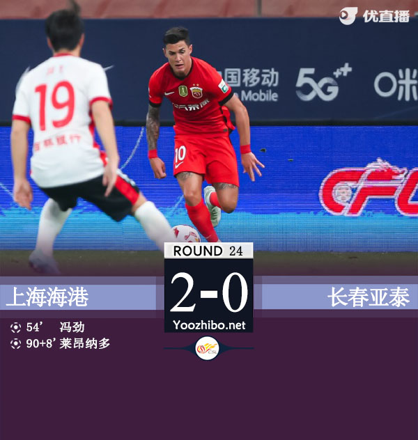 篮球直播吧讯 北京时间2月28日晚上19:35,中超第2轮,上海海港坐镇浦东足球场迎战长春亚泰。上半场,吴亚轲神扑。下半场,冯劲补射建功,莱昂纳多锁定胜局。全场比赛结束,上海海港2-0长春亚泰。本场过后,上海海港迎两连胜,长春亚泰则苦吞两连败。